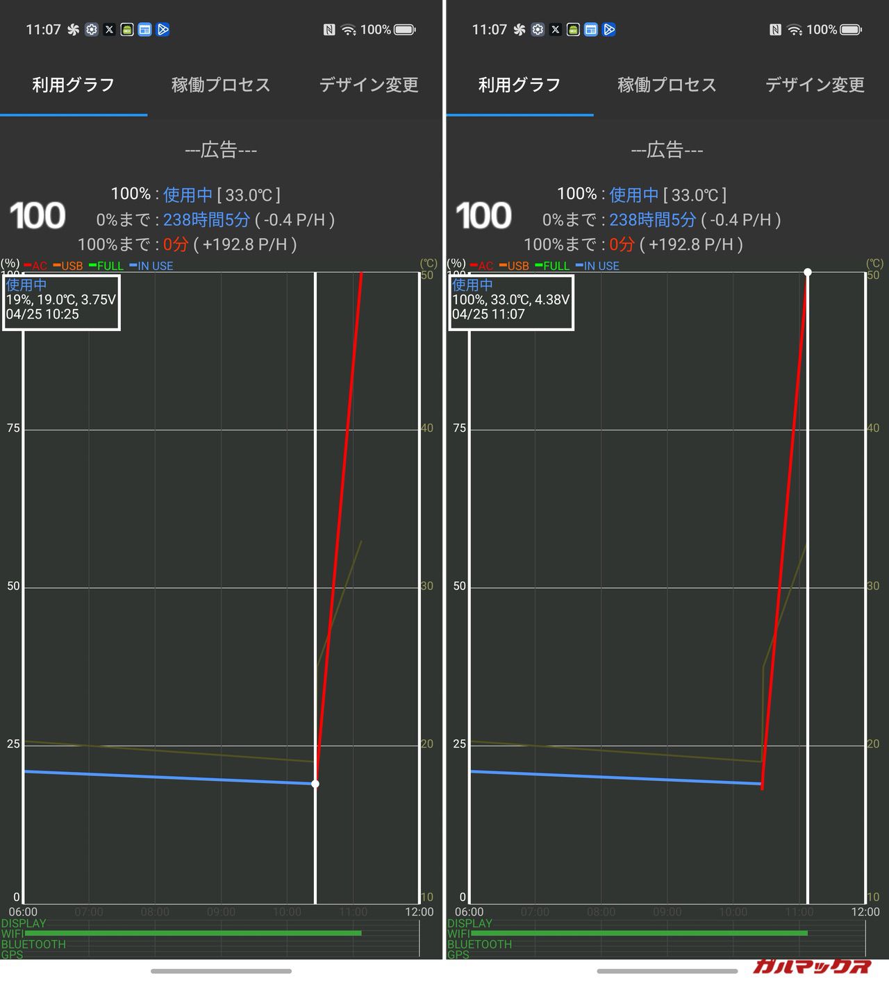 ▼バッテリーの充電はREDMAGIC 11 Airに付属していた純正チャージャーで行いました。19%→100%まで42分。これなら寝落ちしても朝の身支度時にしっかり充電できそうです。↓