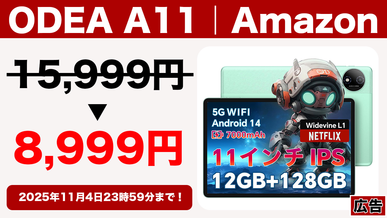 11月4日まで8,999円!11型タブレット「ODEA A11」がセールで格安に