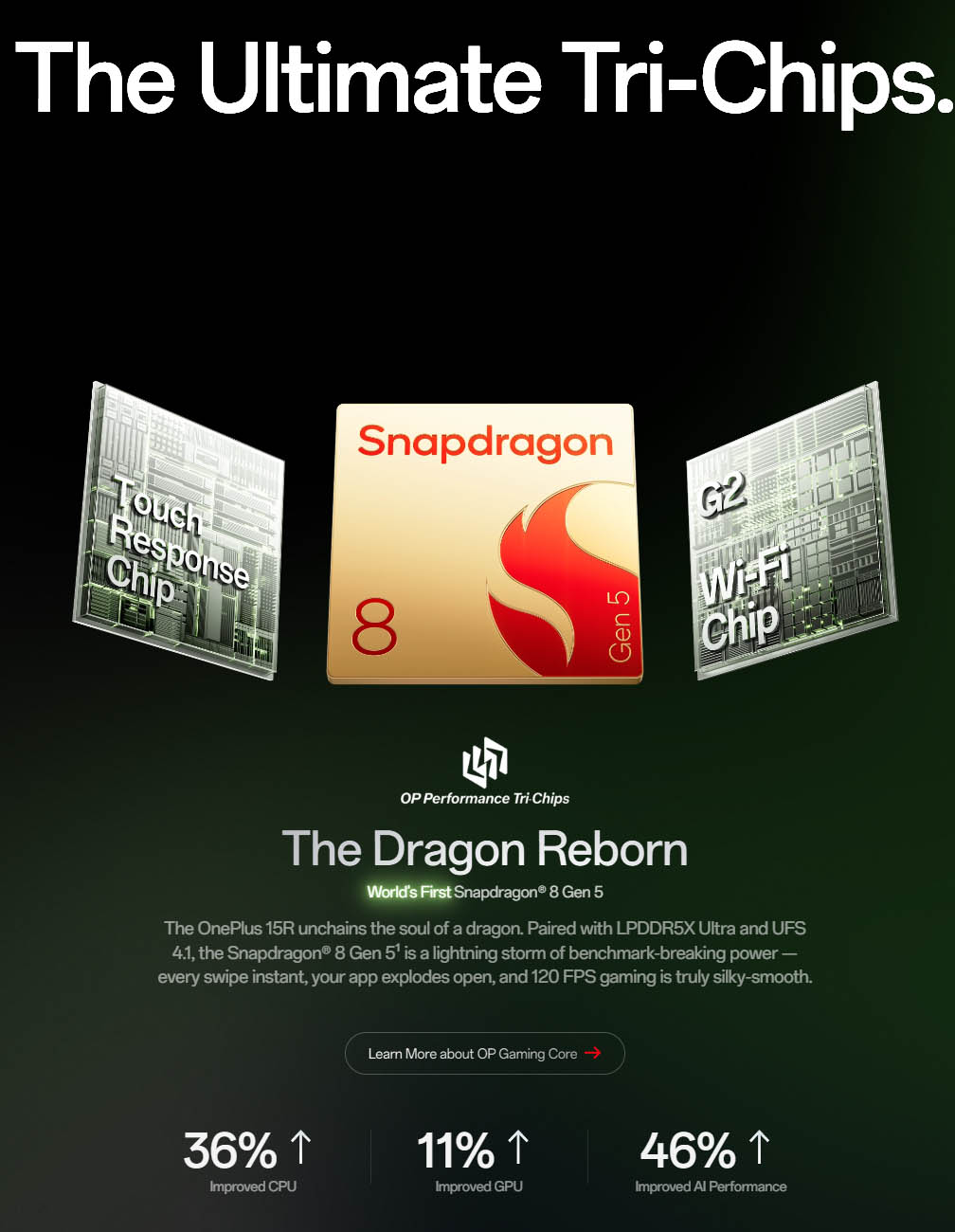 OnePlus 15Rのスペックまとめ!Snapdragon 8 Gen 5に7400mAhバッテリー搭載のゲーミングスマホ!