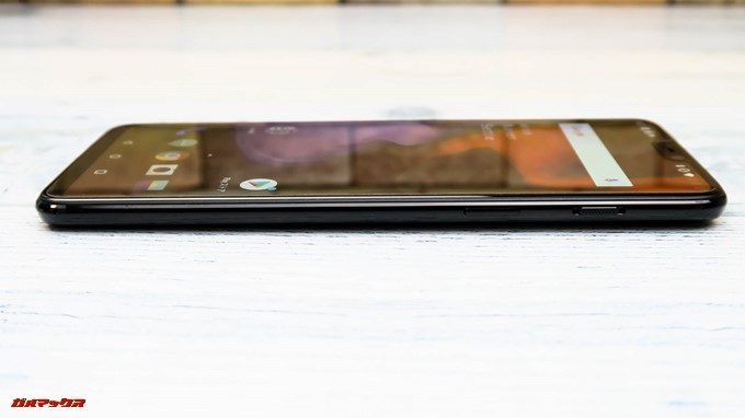 ここからはOnePlus 6の外観とデザインをレビュー!本記事で紹介しているOnePlus 6は背面がガラスタイプのミラーブラックというカラーです。