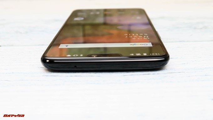 ▼ディスプレイはハイエンド機が挙って採用している切り欠け(ノッチ)タイプを採用しています。↓