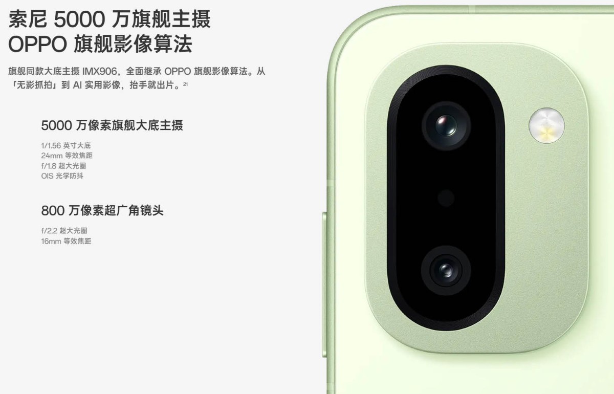 ▼リアカメラは50MP(広角、f/1.8、1/1.56″、IMX906)+8MP(超広角、f/2.2、IMX355 )のデュアルカメラ構成。フロントカメラは16MP(f/2.4)です。↓