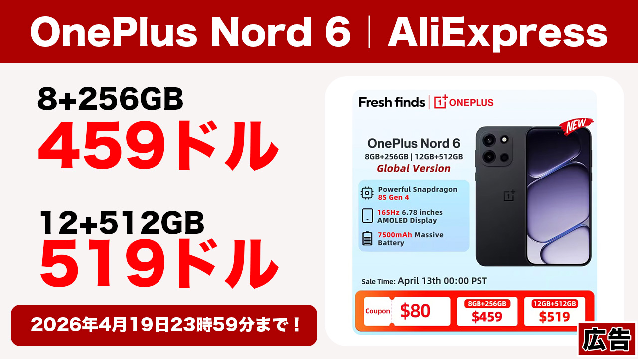 4月19日まで!アリエクでOnePlus Nord 6が459ドル~になるセールを開催!