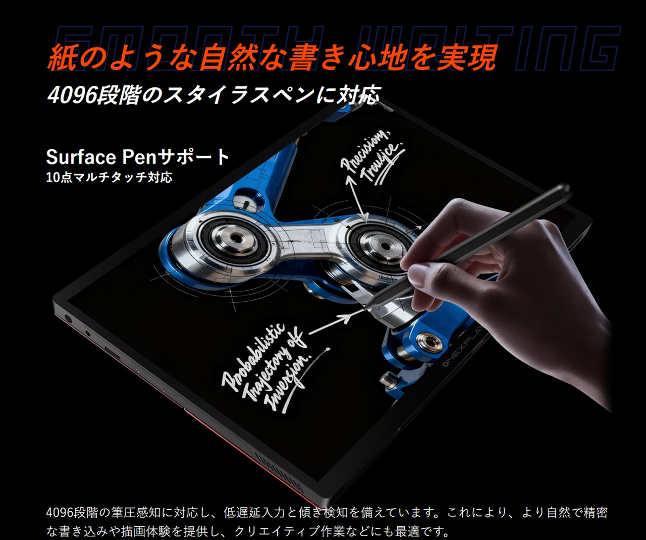 タブレットPCのそれとしては異様なまでの詰め込みっぷり。ゲームはもちろんですが、仕事や創作活動に使える液タブにも用途を想定しているONE-NETBOOK社のこだわりを感じさせる1台です。