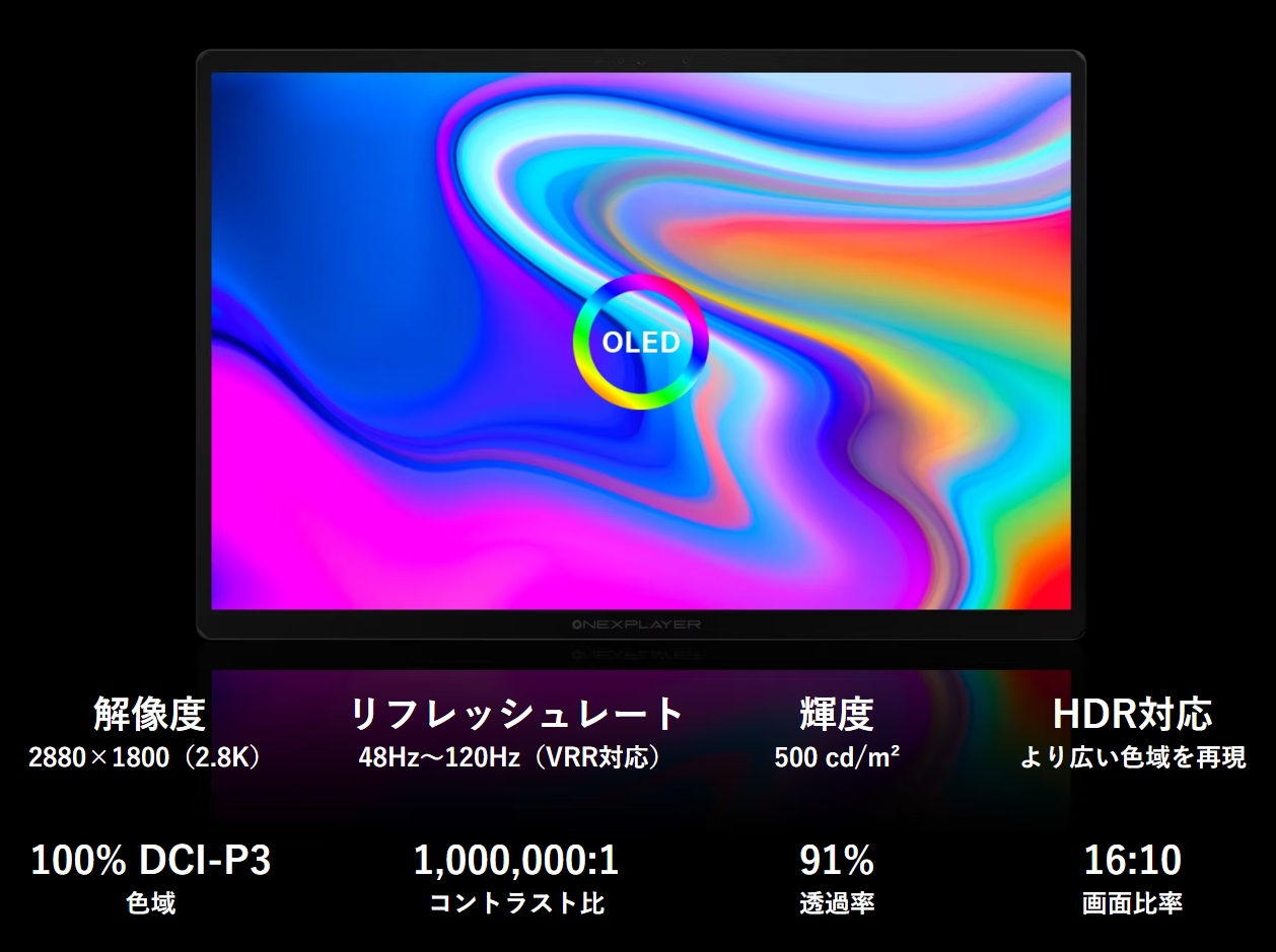 | ディスプレイ | 14インチ、有機EL、2880×1800、120Hz、500ニト、タッチ対応 |