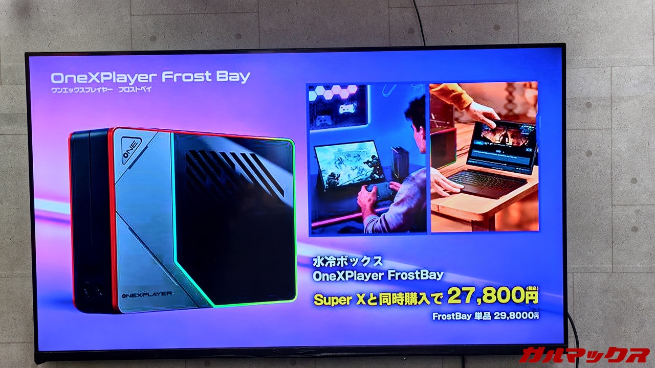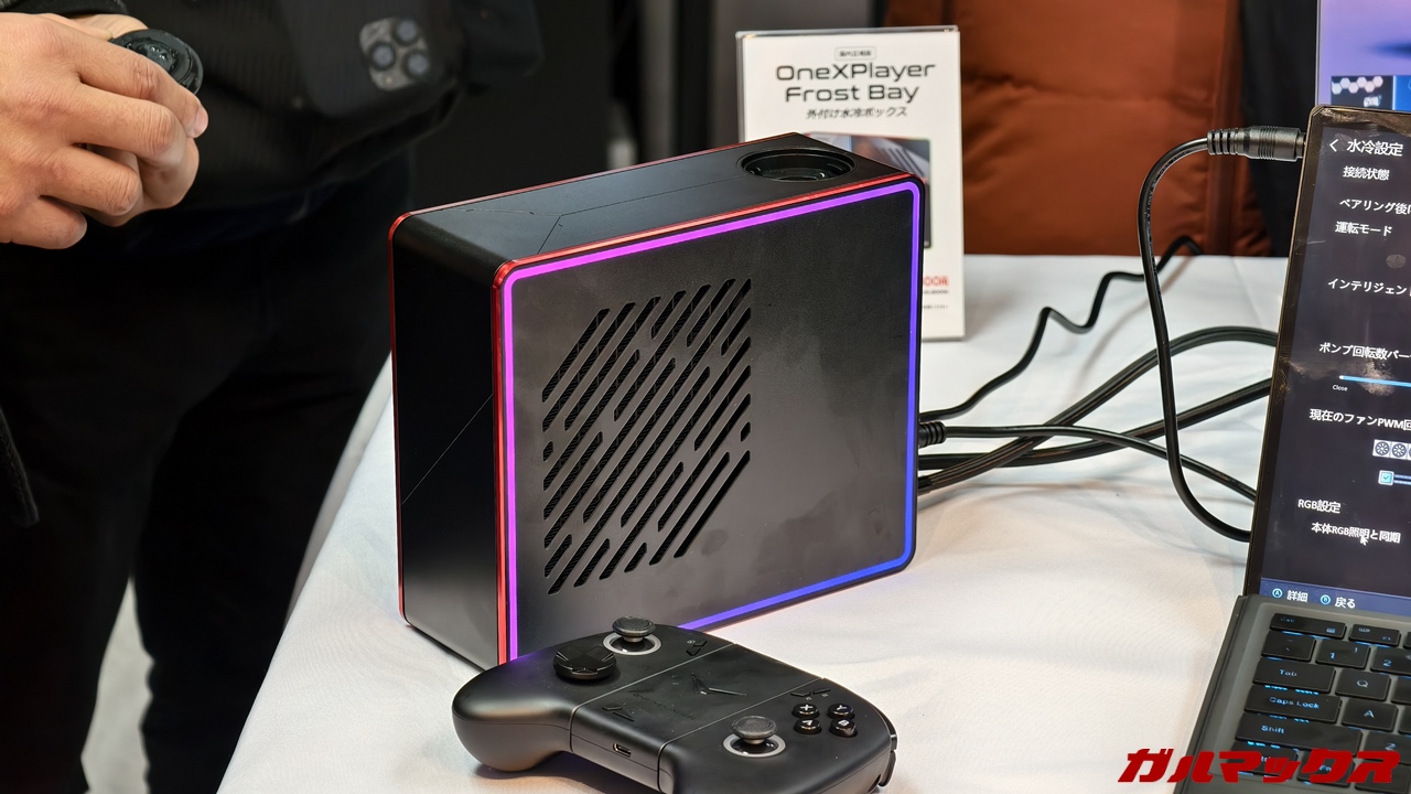 ▼上位グレードのみですが、OneXPlayer Super Xは水冷に対応しているのもミソ!別売り29,800円の水冷ボックスが必要です。取り付けると本機を水冷で冷やすことができ、さらに通常は75Wですが120Wのハイパワー駆動も可能になります。↓