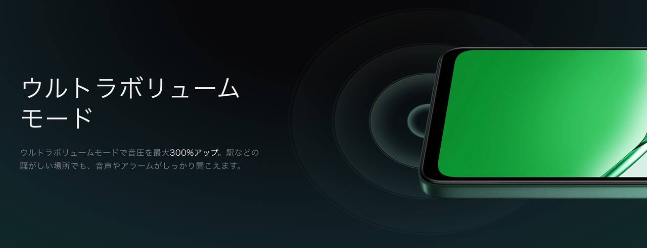 音量はウルトラボリュームモードで音圧を最大300%もアップできるとのこと。これならカバンに入れていても着信音がちゃんと聞こえそう。