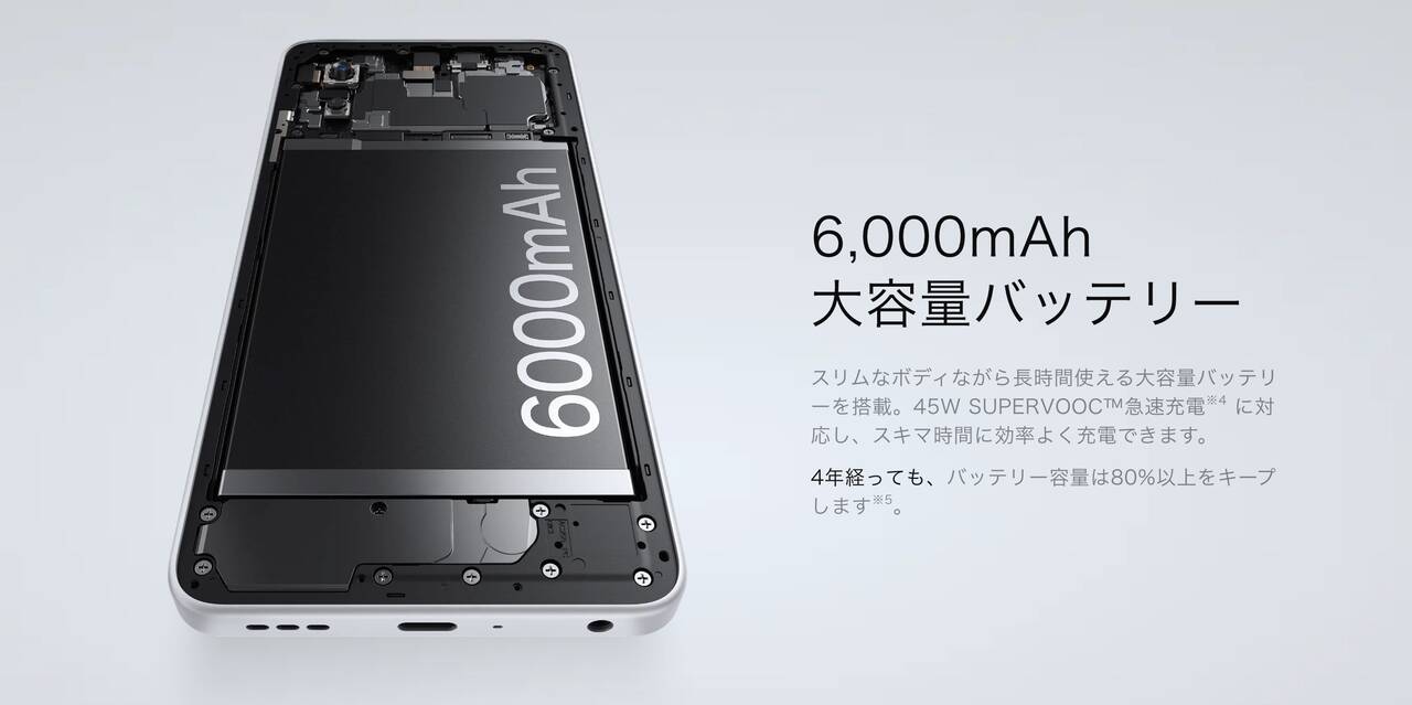 バッテリー容量は大容量の6,000mAhを搭載!エントリーモデルなので重量級の使い方はそもそも難しいというかできないし、ライトユース中心になりそうなのでバッテリー持ちはかなり良さそう!