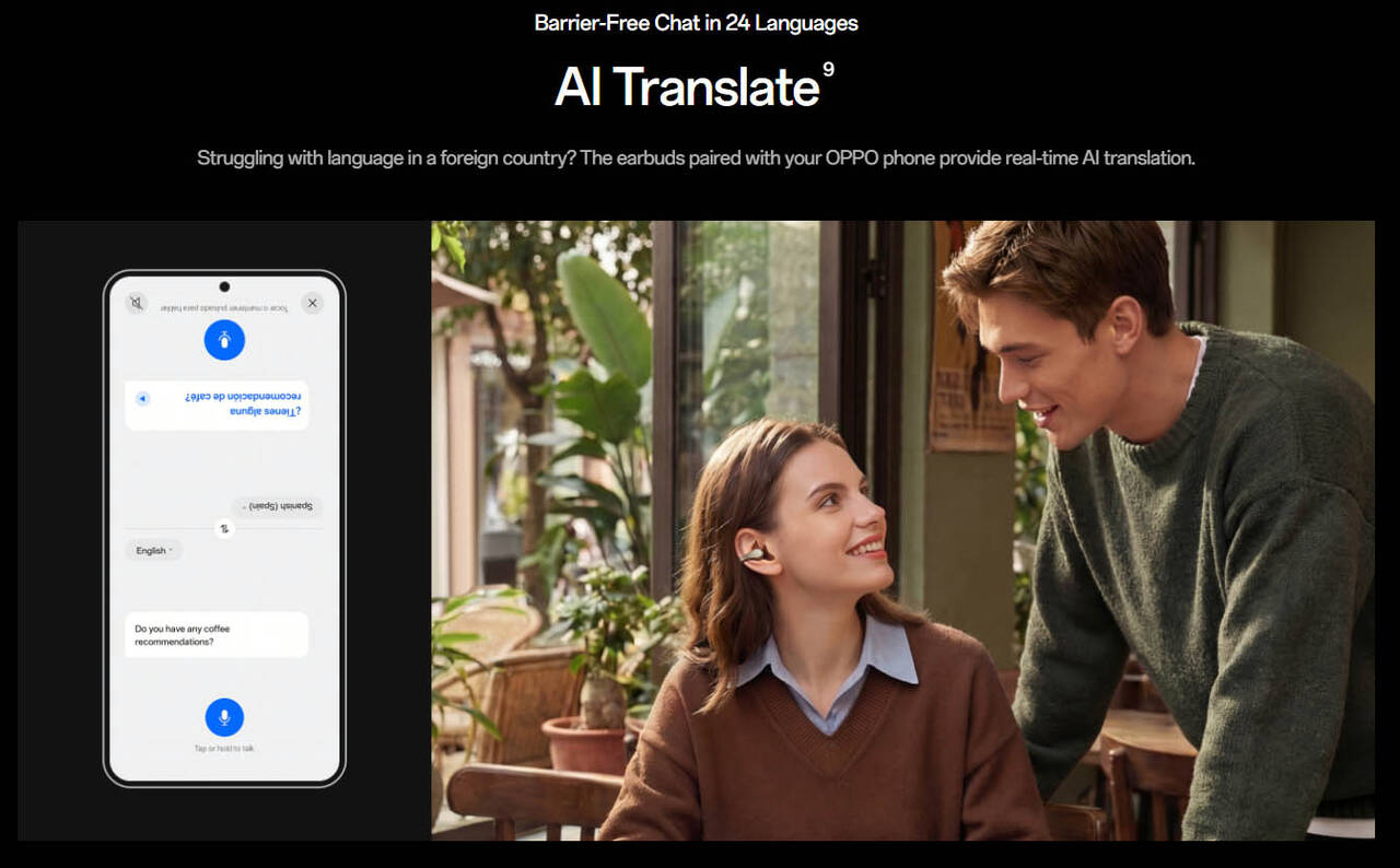 ▼OPPOスマートフォンと接続することで、AIリアルタイム翻訳機能も利用できます。↓