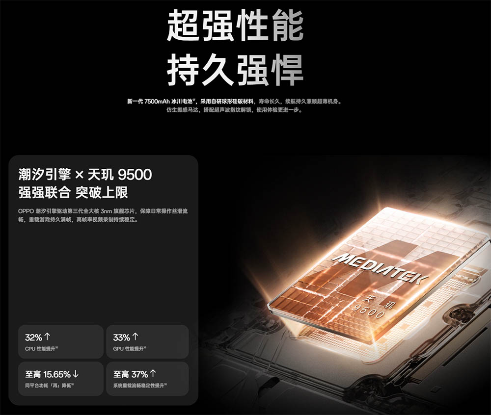 • 7500mAhバッテリー+80W充電+50Wワイヤレス充電