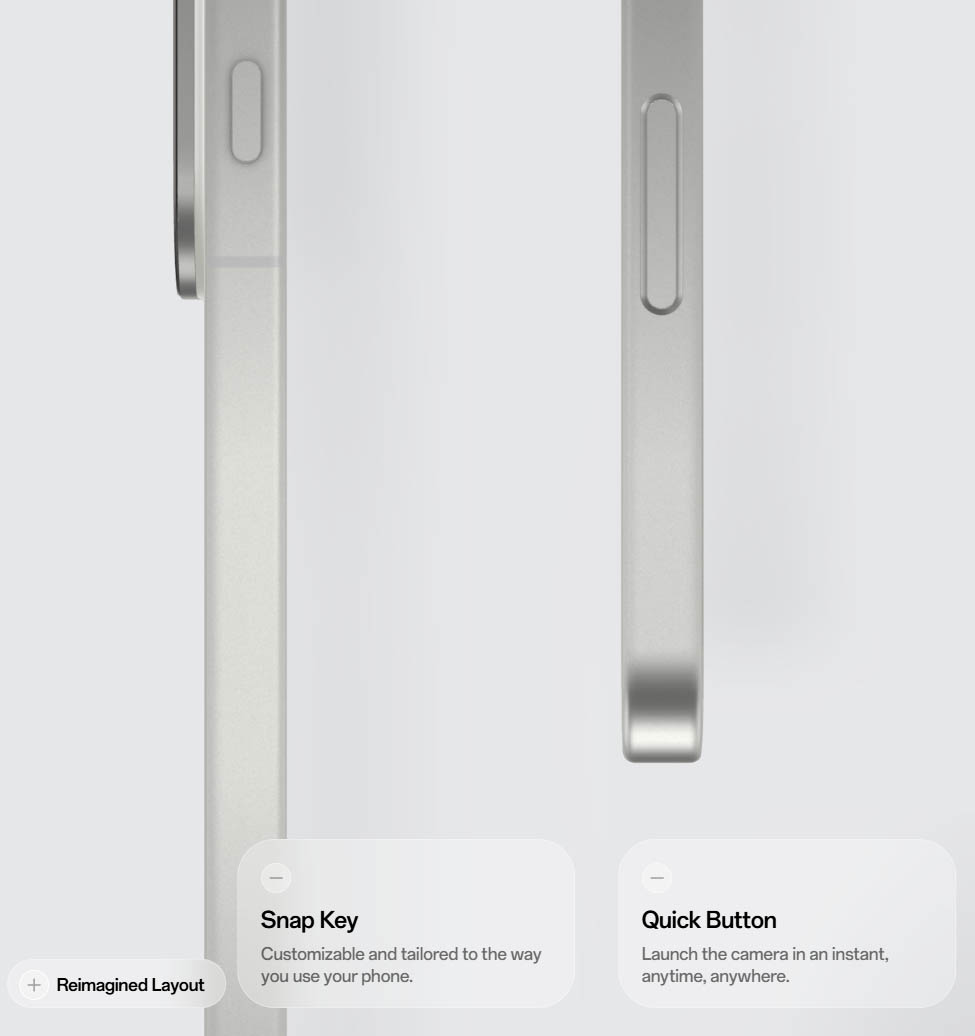 左側面にはスナップキー(ショートカットキー)を搭載。スクリーンショットや翻訳の起動などの機能を割り当てが可能です。右側面にはクイックボタン(カメラコントロール)を搭載しており、カメラの起動やシャッター、ズームなどの動作が利用できます。