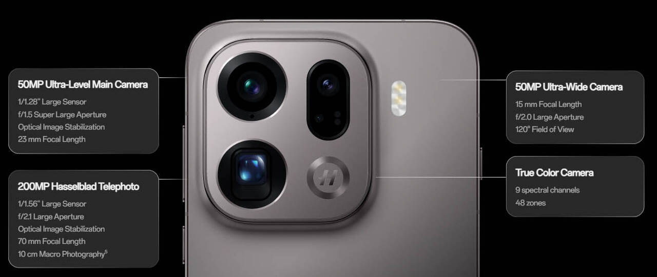 ペリスコープ望遠カメラには1/1.56″のHP5を搭載。競合のvivo X300 Proに搭載されているHPBよりかは一歩劣りますが、その分HP5は薄型なので、カメラバンプをコンパクトかつ薄くできているというわけですね~!テレマクロ対応で、最短焦点距離は10cmとめちゃくちゃ寄ることができます。これは先代の最上位モデルであるFind X8 Ultraと同じですのでかなりアドバンテージとなりそうです。