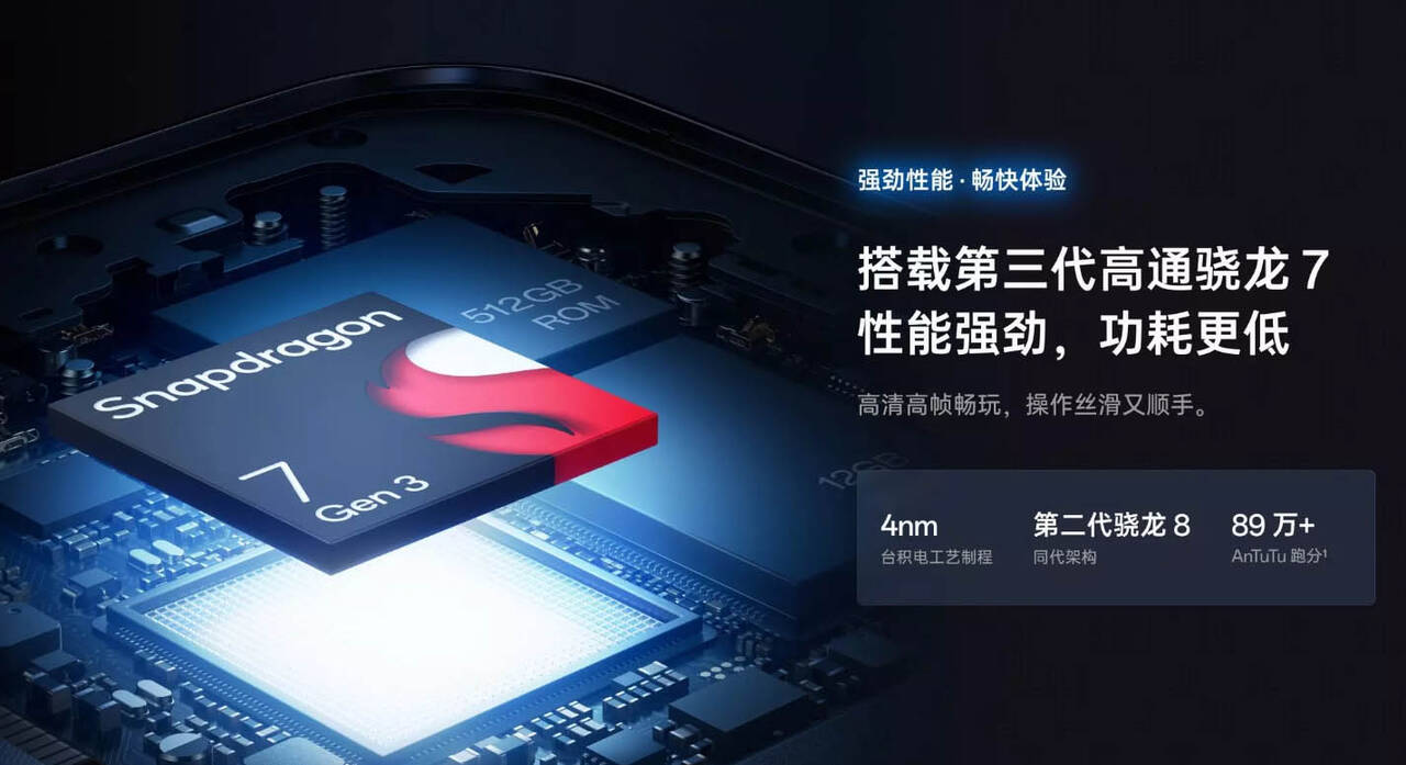 ▼SoCにはSnapdragon 7 Gen 3を搭載。↓