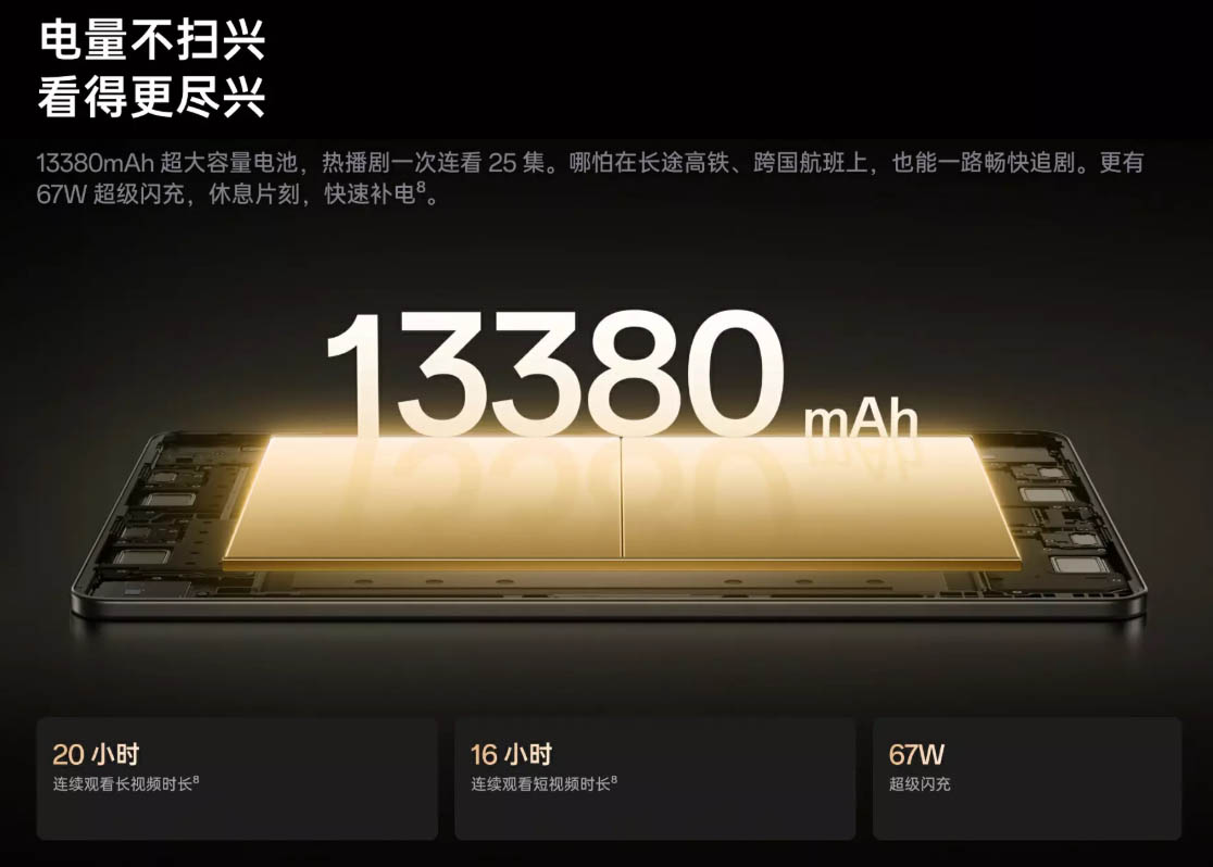 ▼バッテリー容量は13380mAh。67W(SUPERVOOC)、55W(PPS)、44W(UFCS)の急速充電に対応しています。↓