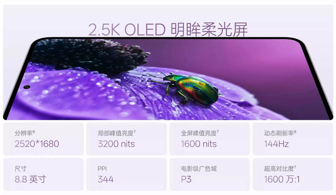 ▼バッテリー容量は8000mAh。67W(SUPERVOOC)、55W(PPS)、44W(UFCS)の急速充電に対応しています。↓