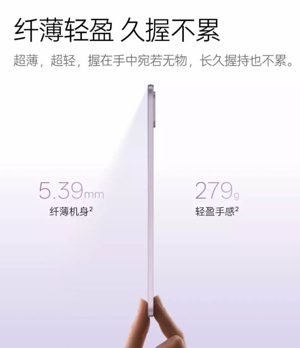 ▼サイズは194.38×132.38mm。厚さは5.39~5.46mmと超薄型。重量も279~282gと8.8インチでは異次元の軽さです。↓