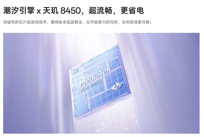 ▼SoCにはDimensity 8450を搭載。AnTuTuスコア(v10)は160万点程度のSoCで、普段遣いは多くの方にとって快適で、中程度のゲームであればプレイできる性能があります。↓