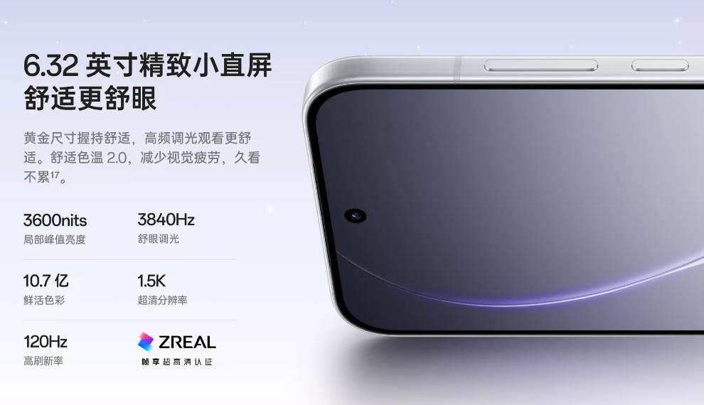 ▼ディスプレイは6.32インチの有機EL。解像度は2640×1216で、リフレッシュレートは120Hzに対応しています。ピーク輝度は3600nitsに達します。↓