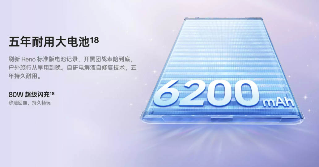 ▼バッテリー容量は6200mAh。先代からの増加は200mAhにとどまっていますが、本体サイズが80W(SUPERVOOC)の急速充電の他、55W(PPS)、44W(UFCS)などの汎用充電規格にも対応しており、独自規格以外でも高速な充電が可能です。↓
