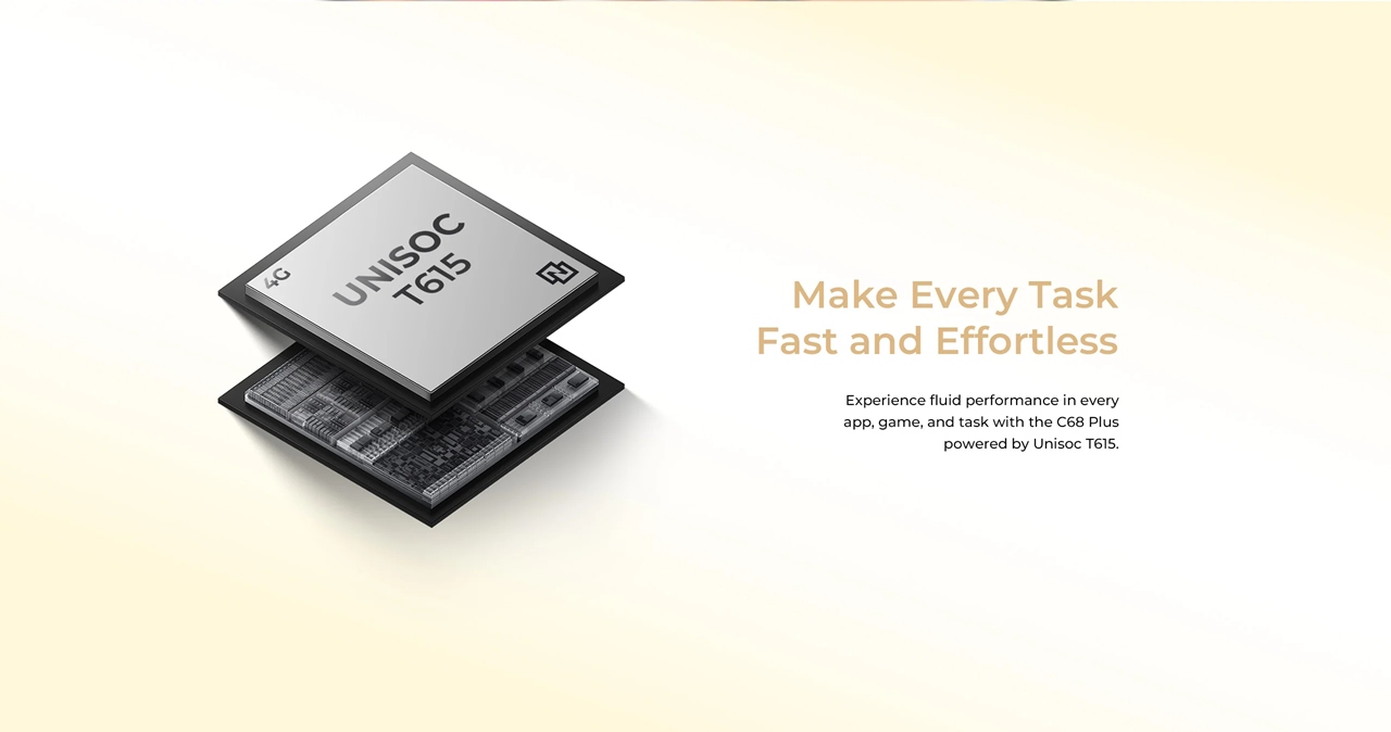 ▼OUKITEL C68 Plusが搭載するSoCはUnisoc T615。↓