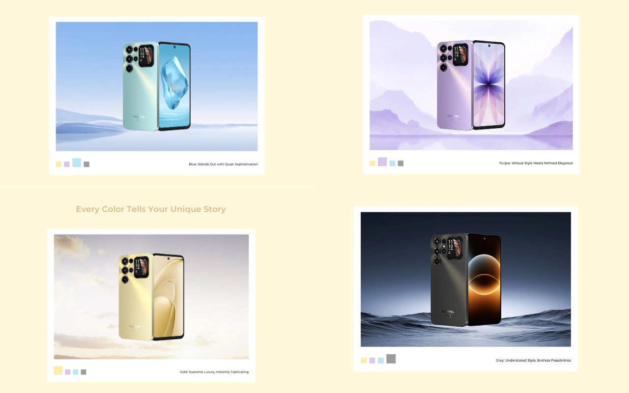 OUKITEL C68 Plusのカラーはブルー、パープル、ゴールド、ブラックの計4色となっています。外観デザイン自体はエントリースマホと思えんぐらいのインパクト!加えてカメラ周辺のデザインはGalaxy S Ultraのそれに似ていますね。