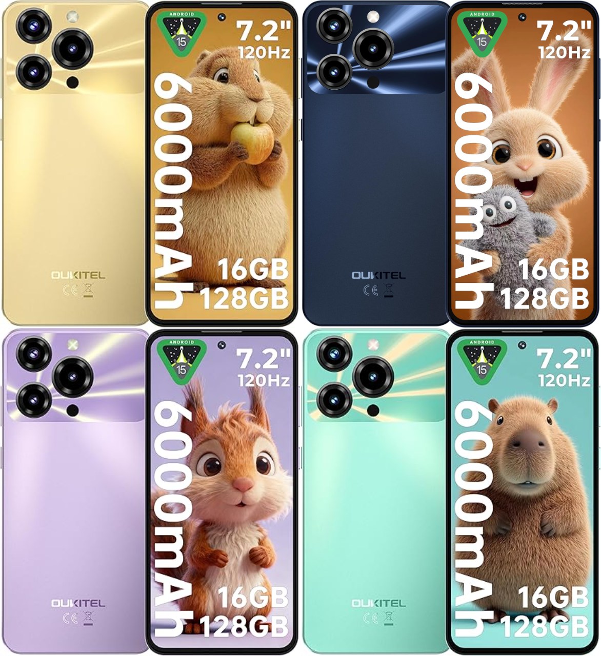 OUKITEL C69のカラバリはイエロー、ネイビー、パープル、グリーンの計4色と豊富!