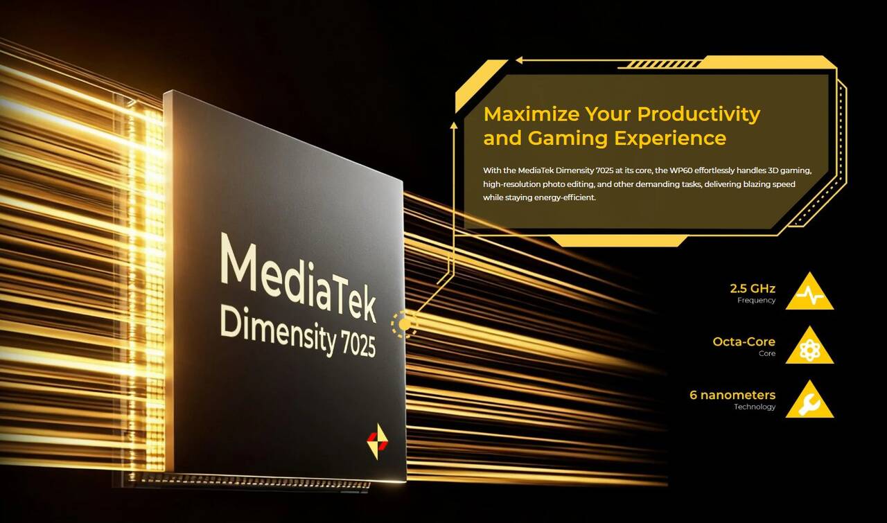 OUKITEL WP60のSoCはDimensity 7025を採用!AnTuTu参考値は49万点ほどで日常使いなら難なく動かせるスペックを持ち合わせます。3Dタイプの重たいゲームは不得手。