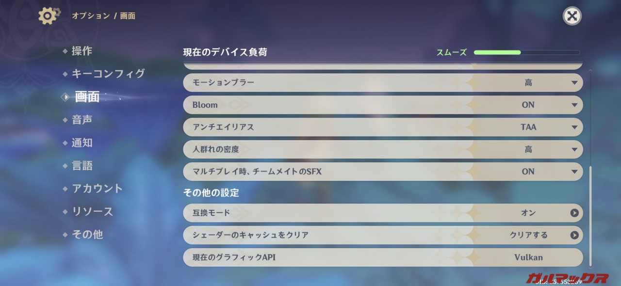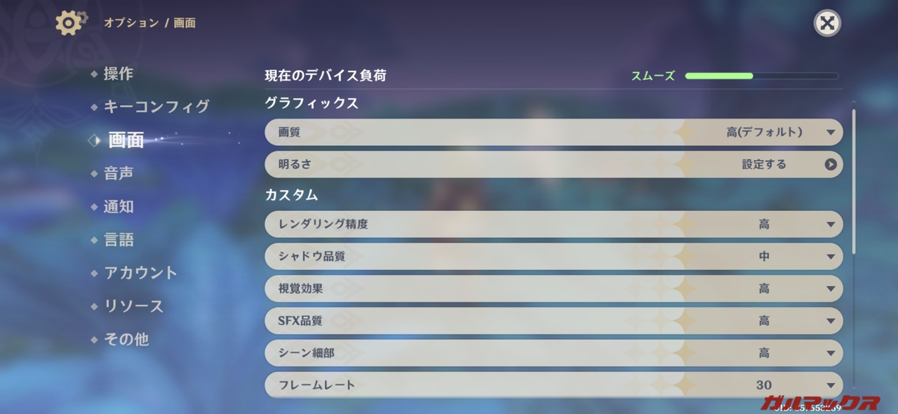 ▼ベンチマークとなる原神にて検証。デフォルトでは高画質。ハイエンドの証左です。↓