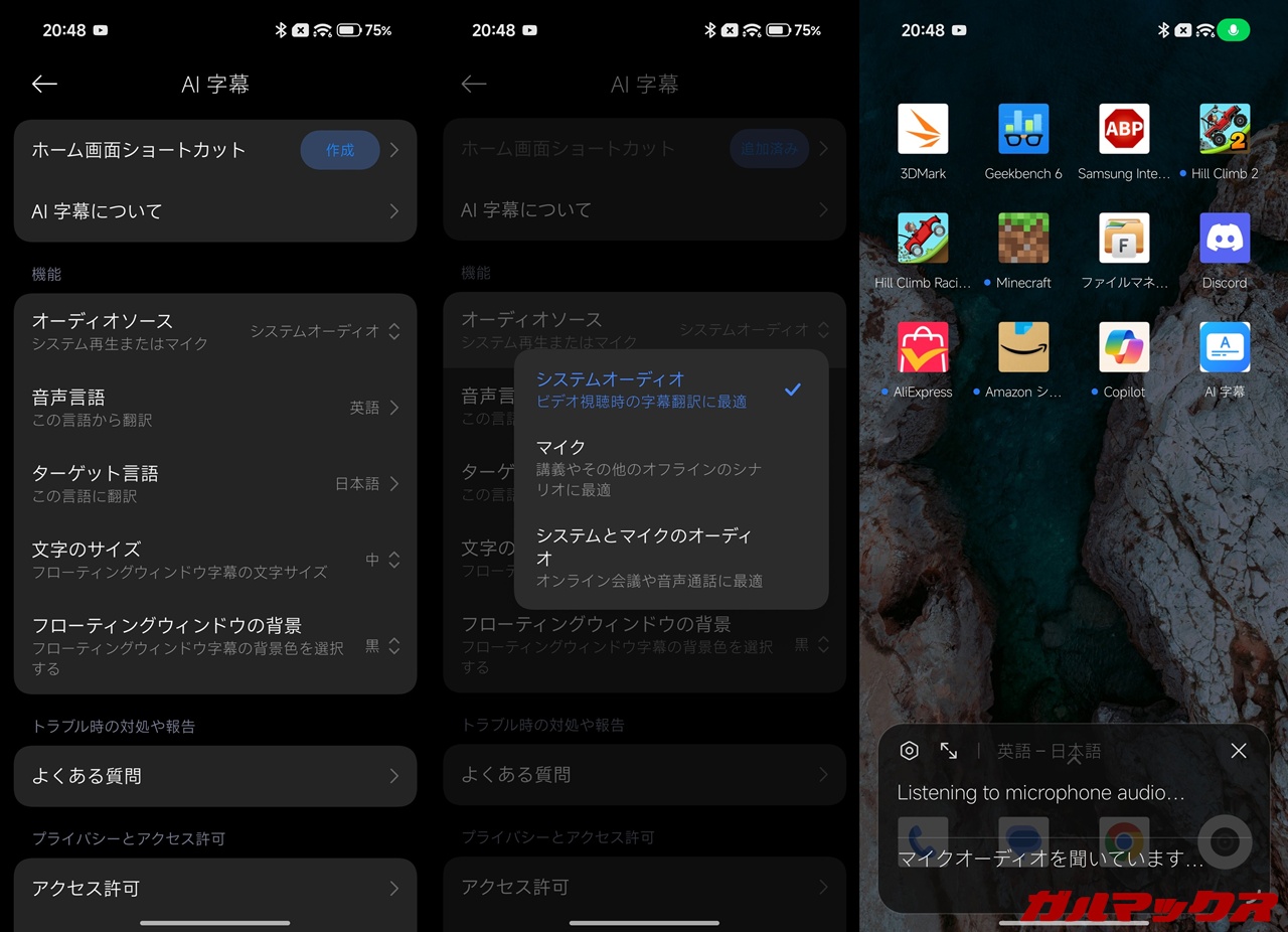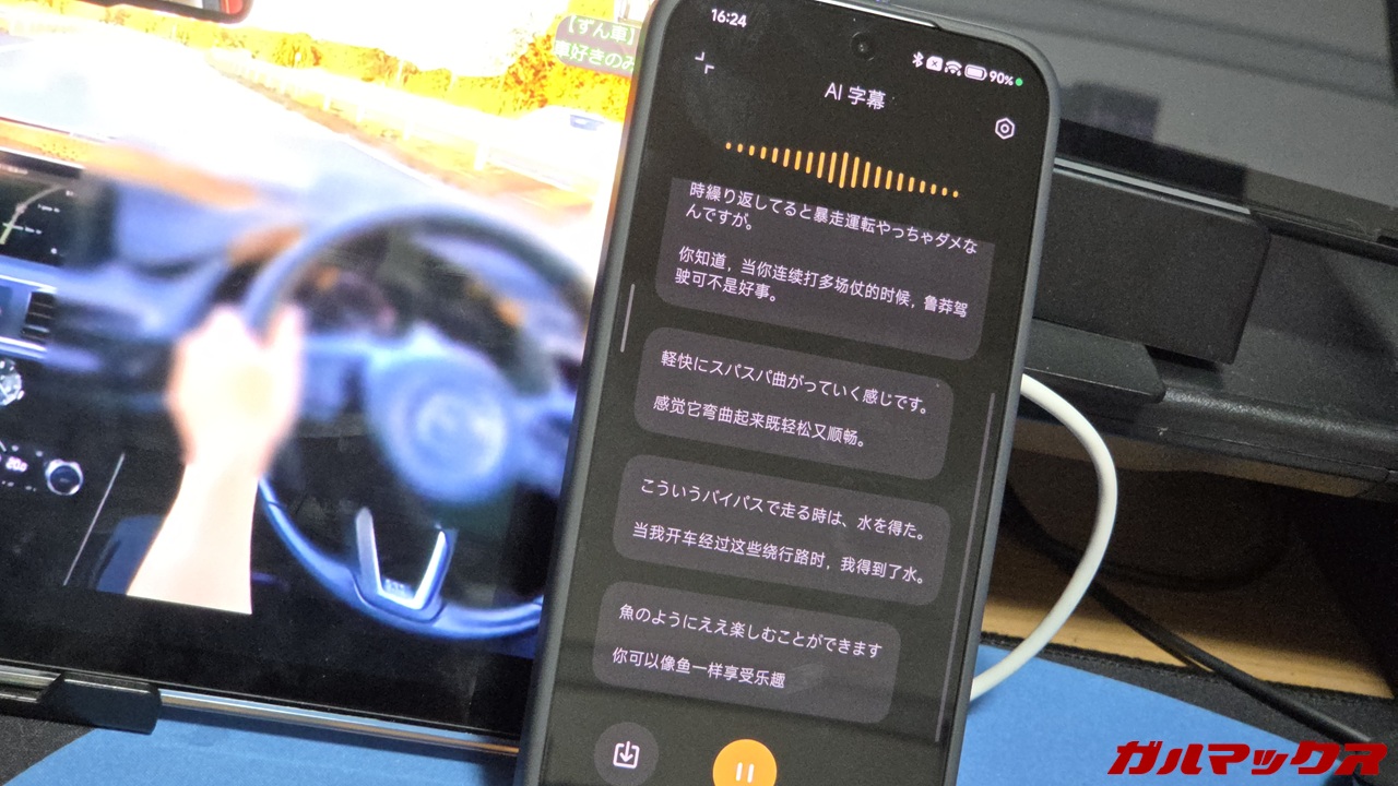 ▼あと文字起こし機能にも対応していました。翻訳もできるんで、外国の人との会話や、動画の翻訳視聴もできるのが良い。↓