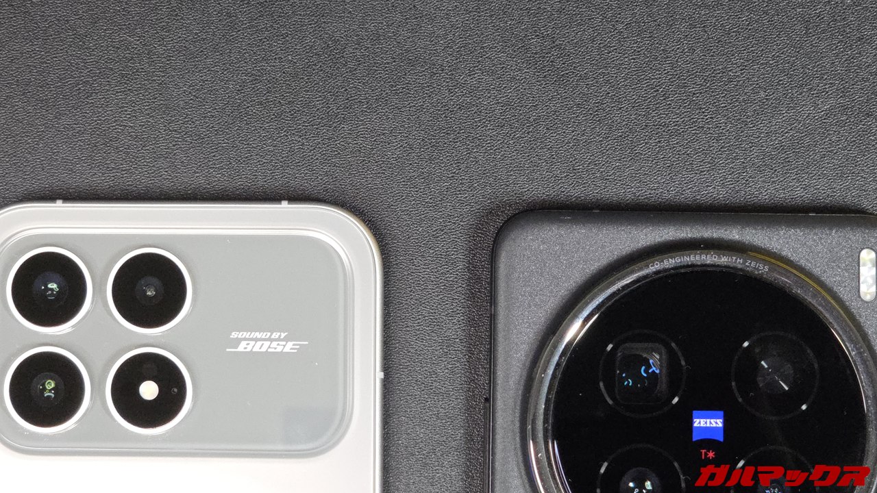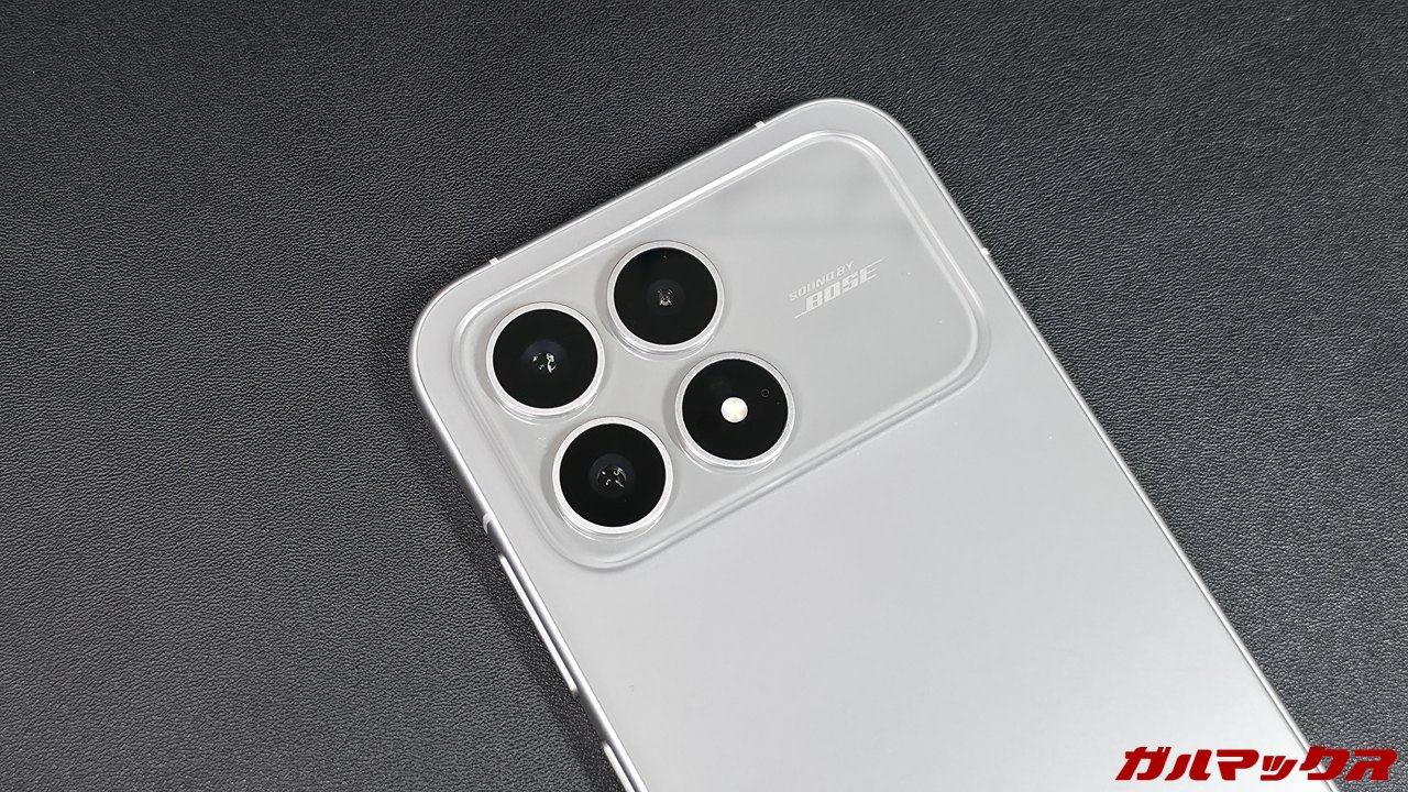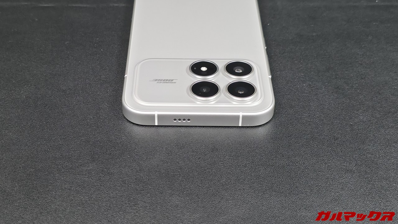 ▼カメラはクアッド風トリプルカメラ。作例については後述。その横にはBOSEロゴがあしらわれています。↓
