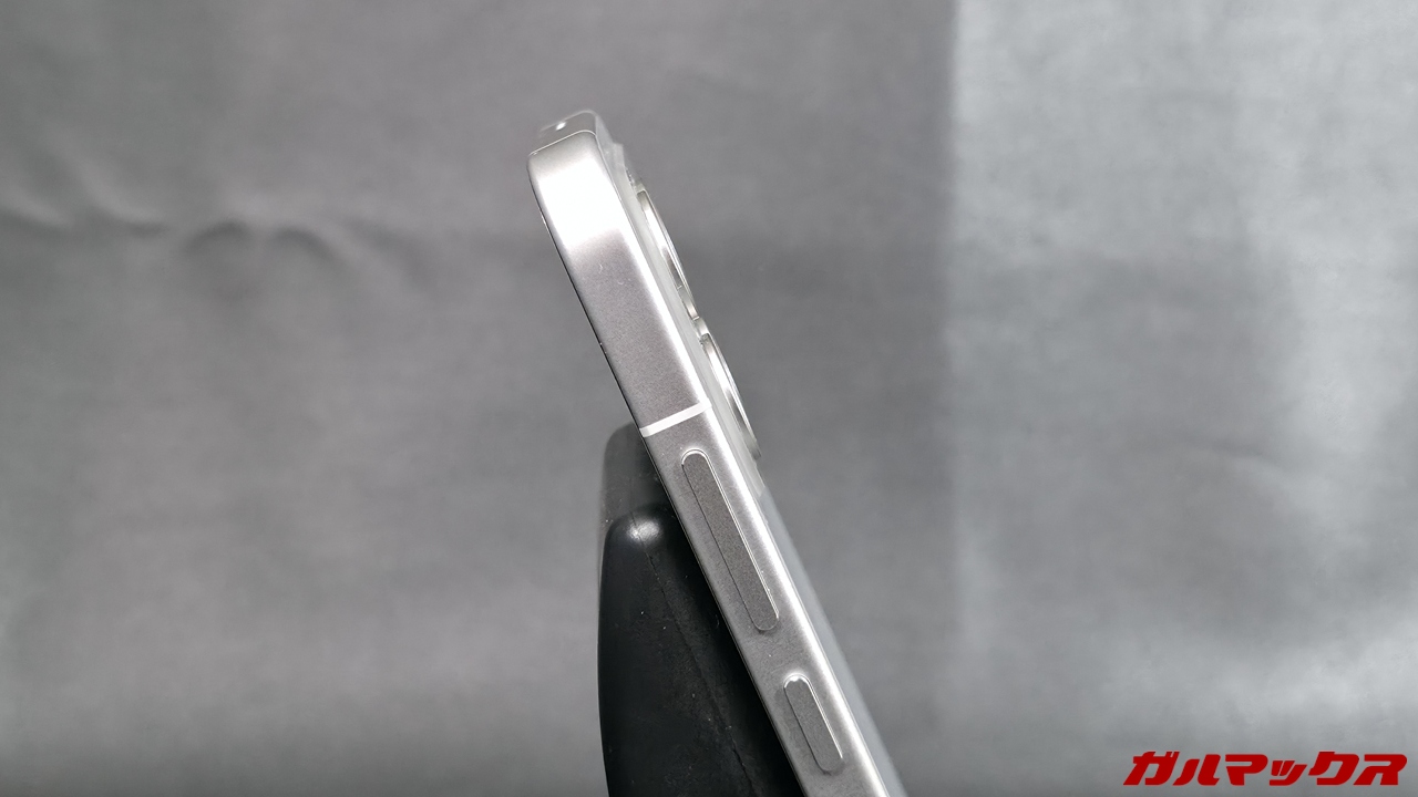 デザイン自体はさながらiPhone Proモデル風と言われるタイプ。カメラの真横に出っ張りが張り出しているスタイルとなっています。カラーはチタンで、ここもかつてのiPhone Proと同じ色合い。