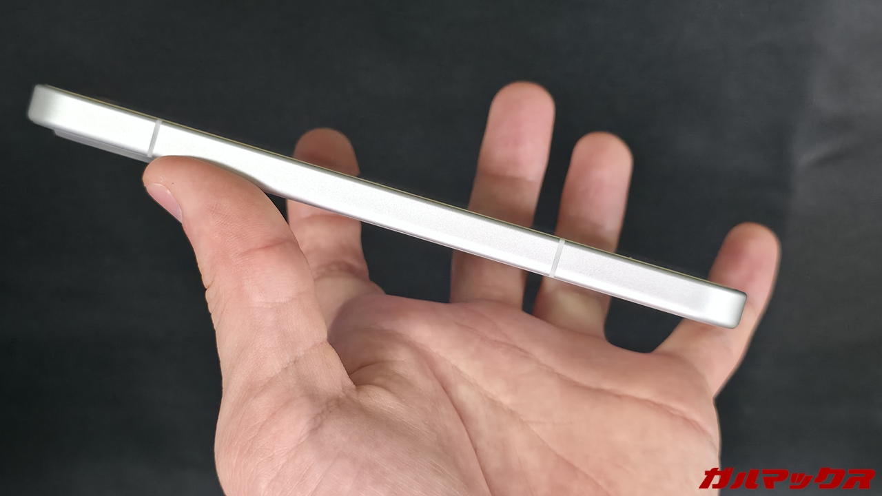 ▼側面はフラット形状ですが、若干ながら丸められているので思ったより「手に刺さる感じ」はなかったです。思ったよりなかったってだけですが。あと側面は金属感の強いヘアライン形状が良かったなあとは思った。ここだけは物足りない。↓