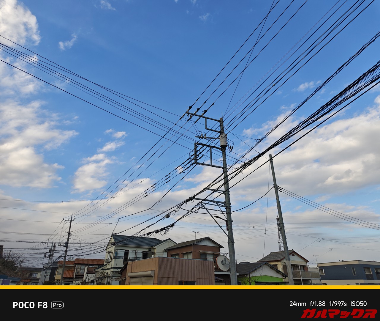 ▼青空の濃さもおとなしめ。電線のディテールはとても細かくお気に入りの1枚。↓