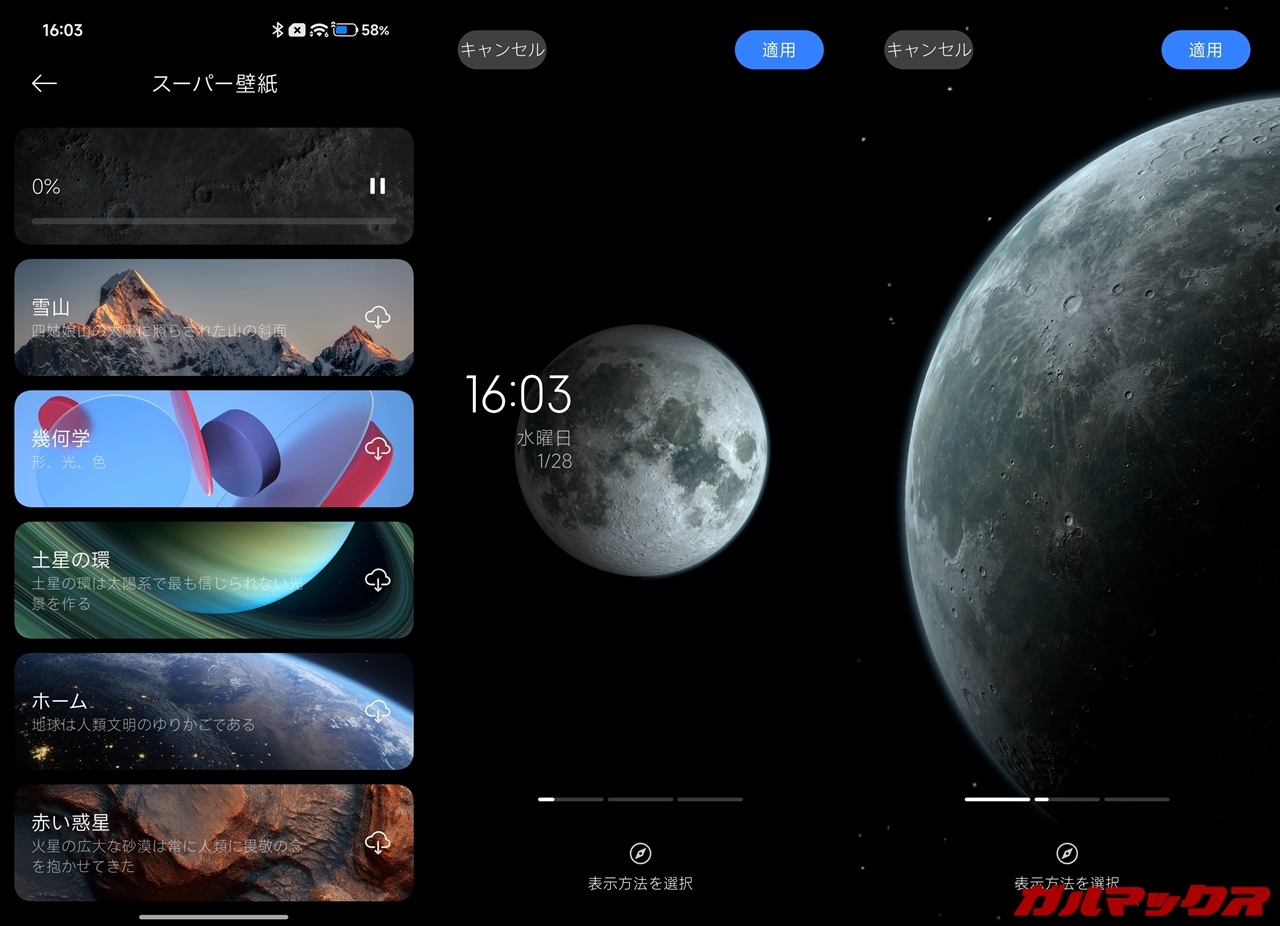 ▼AoD機能に対応しており、常時表示や見ているときだけ表示するスマート表示に対応しているほか、シームレスにつながるようにアニメーションするスーパー壁紙機能にも対応!↓