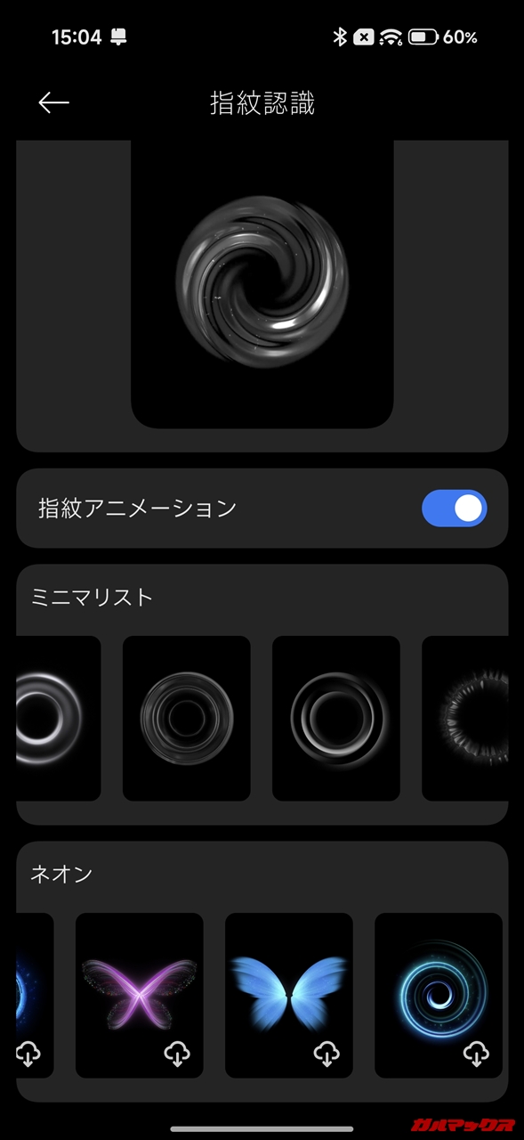 ▼画面内指紋センサーもバッチリ。速さも精度も文句無しです。また認証時はエフェクトも選べるんで、見た目も楽しめるってのもGood。↓