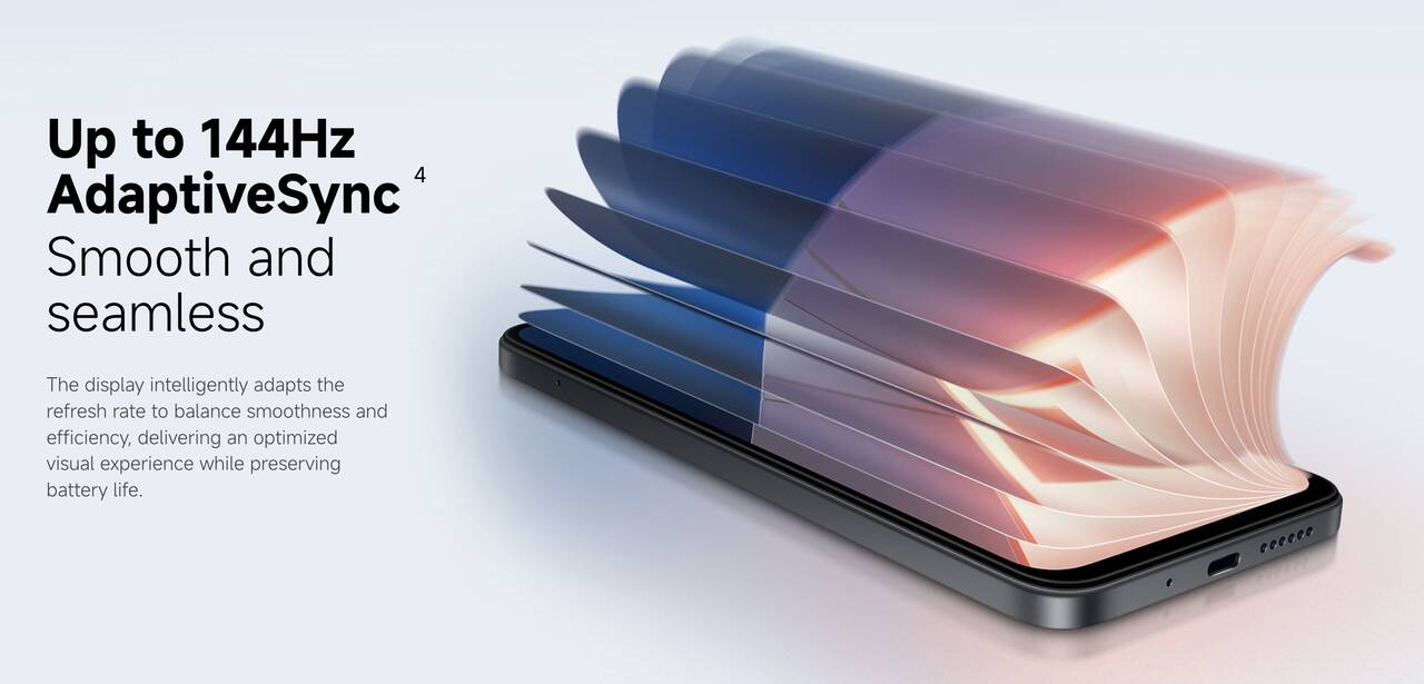 ▼滑らか表示はハイエンドでも120Hz止まりが多いんですけど、POCO M8s 5Gはなんと最大144Hz。一般的なディスプレイの2倍以上の滑らか表示ができる仕様となっています。↓