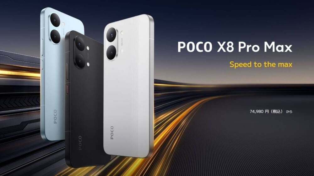 POCO X8 Pro Maxが日本向けに発表されましたよ!いわゆるX8 Proの兄貴分。これまでになかったPro Maxグレードが登場となりました。某iPhoneを意識したようなネーミングですが、ソレに恥じない高いトータルスペックも持ち合わせています。