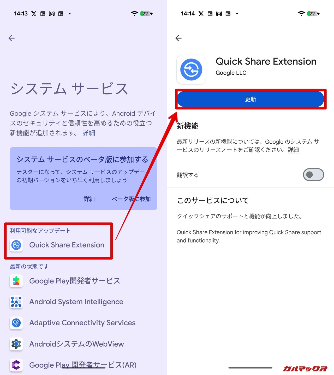 ▼利用可能なアップデートに「Quick Share Extension」と表示されているはずなのでタップして更新しましょう。↓
