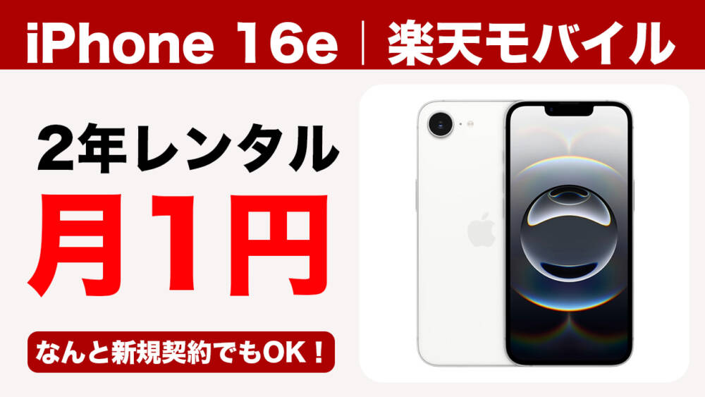 楽天モバイルのiPhone 16eが新規契約でも2年レンタル月1円!電話かけ放題のiPhoneを確保しよう