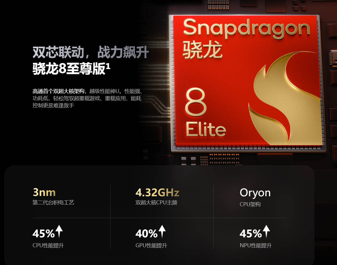 ▼SoCにはSnapdragon 8 Eliteを搭載。↓