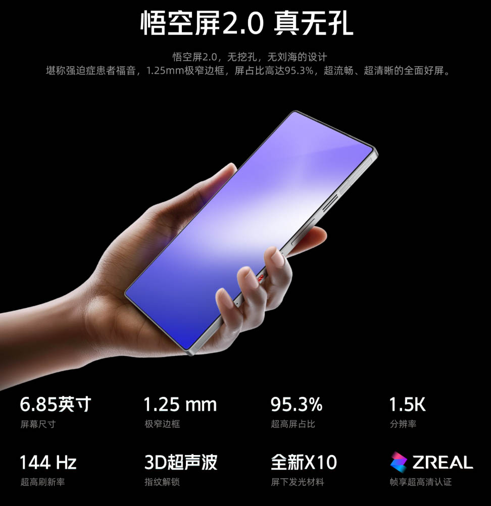 ▼ディスプレイは6.85インチの有機EL。解像度は2688×1216で、リフレッシュレートは144Hzに対応しています。↓