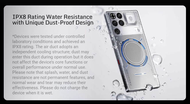 ▼水冷システム、空冷システム、イヤホンジャックを搭載しながら、IPX8の防水に対応しているらしい。↓