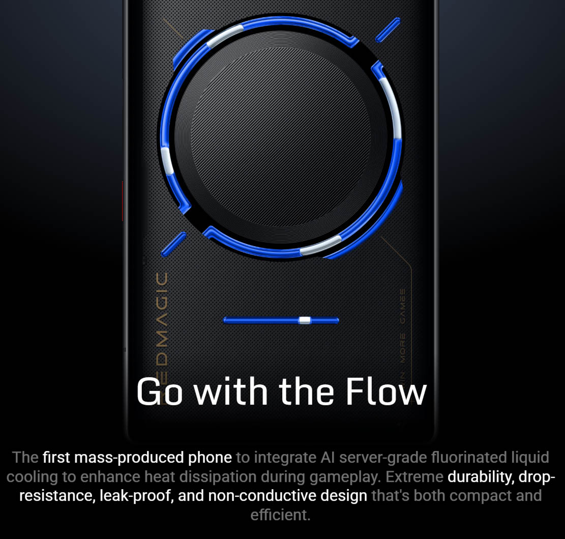 ▼なんとスマートフォンでは初のフッ素系液体冷却システムを搭載。水冷ですよ、水冷。つよつよゲーミングPCとかに搭載されている水冷。それが片手で持てるスマホに搭載されているなんて凄いわ…。↓