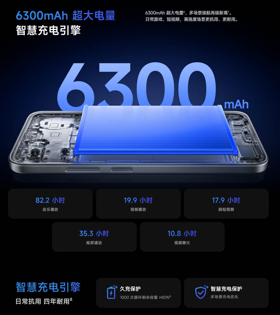 ▼バッテリー容量は6,300mAhと、ベースモデルのREDMI R70 5Gより300mAhだけ多くなっています。充電速度は15Wです。↓