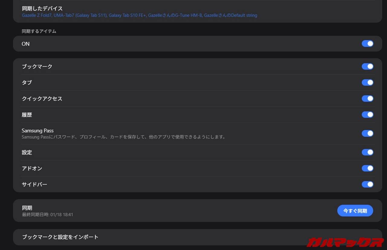 ▼スマホ版ブラウザとの同期もバッチリ。ブックマークや閲覧履歴、またパスワードの自動入力の内容もインポートできますよ!↓