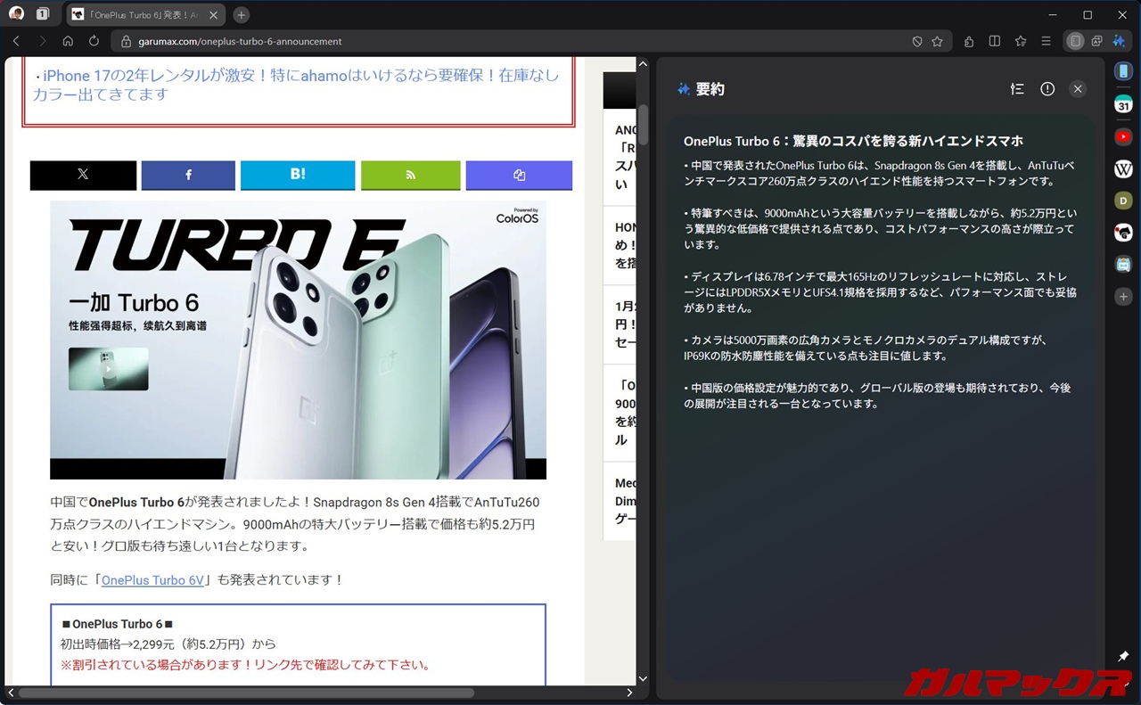 ▼諸元表やスペック記事などもろもろを自分の目で確かめたい筆者にとってはあまり使わなかったんだけど、AI要約は普通に見やすく便利だと思います。↓