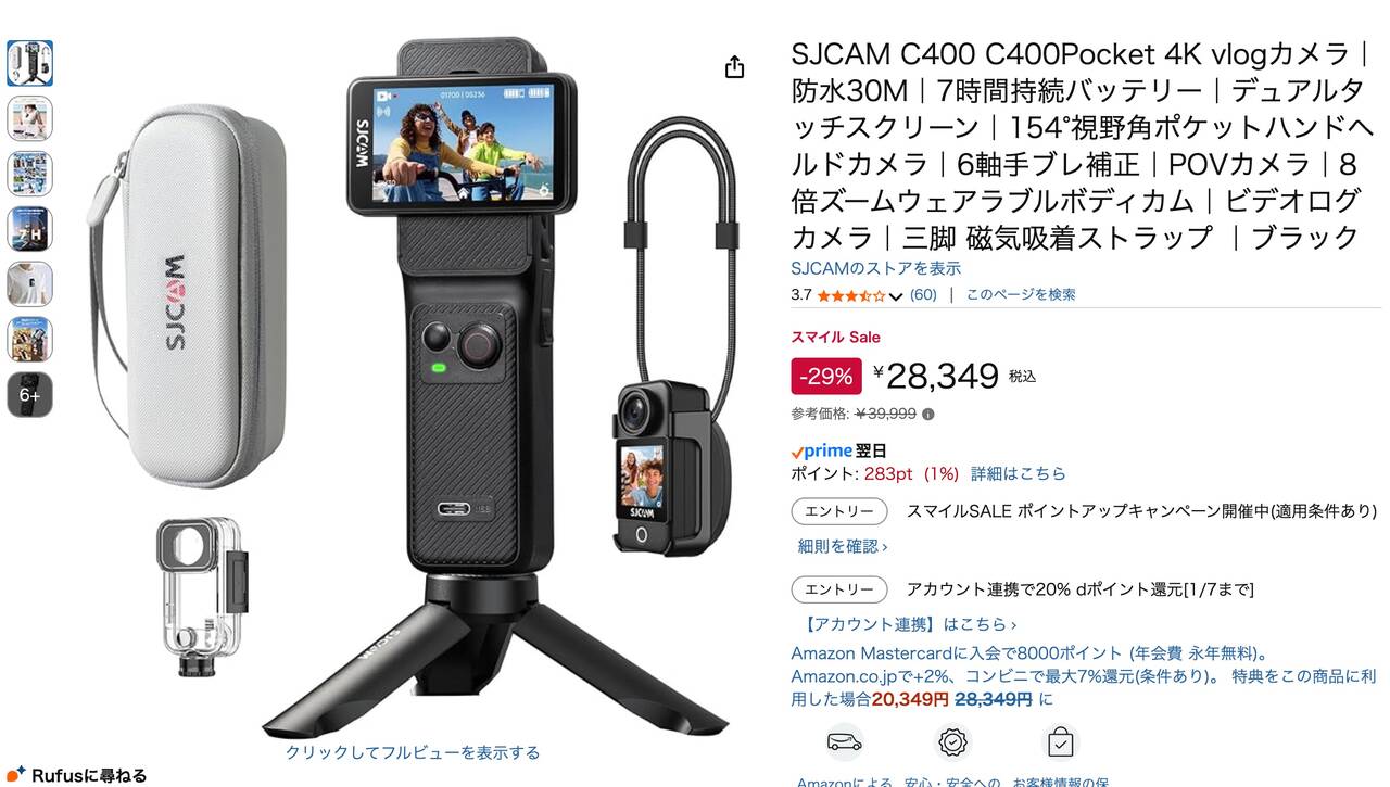 安い時には3万円を切るとは言え、いくら安くても画質を求められるアクションカメラだから、もう少し奮発して大手製品を買ったほうが良いと判断する人が多そう。勝負するなら安い時に4万円くらいで手に入る価格に設定して、DJIやInsta360に対抗できる画質と手ぶれ補正を備えたほうがよっぽど購入候補に入れてもらえるんじゃないかと思った所存。