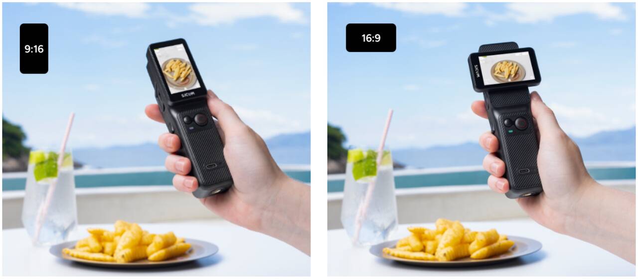 ▼最後は分離モード。取り外したカメラで捉えた映像をグリップ部分のディスプレイで映像を確認できるので、例えばヘルメット上部に取り付けたカメラの画角確認にも使える。↓