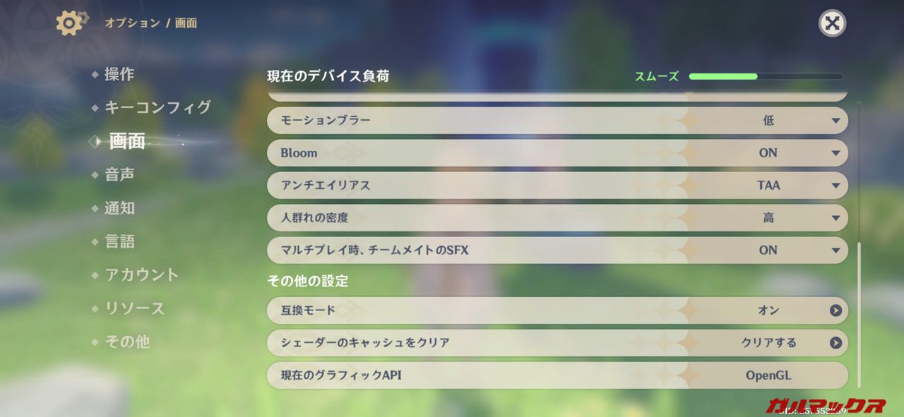 ▼グラフィックのデフォルト設定は「低」となっていました。↓