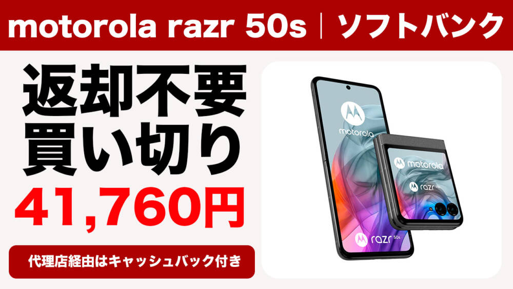 ソフトバンクのミドルレンジ折りたたみスマホ「motorola razr 50s」が機種変更でも買い切り41,760円に値下げ!